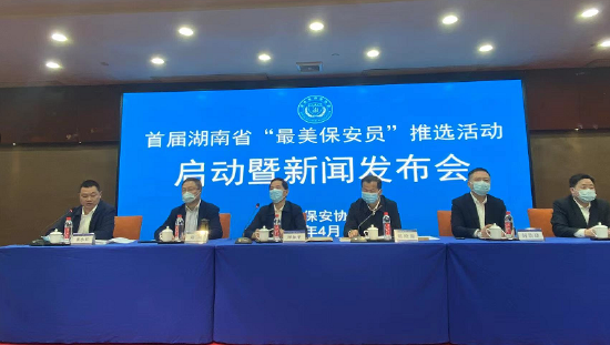 2022年4月19日上午,由湖南省保安协会主办、湖南日报社协办的首届湖南省“最美保安员”推选活动启动仪式暨新闻发布会在长沙召开,省保安协会会长谭和平、省保安协会顾问兼专家委员会主任委员赵剑、湖南省物业管理行业协会书记封浩建、省公安厅治安总队内保支队长兼省保安协会秘书长张小兵、省保安协会专职副秘书长常自力、十余家新闻媒体出席发布会。发布会由省公安厅治安总队副总队长、二级警务专员兼省保安协会监事长刘绘锦主持。