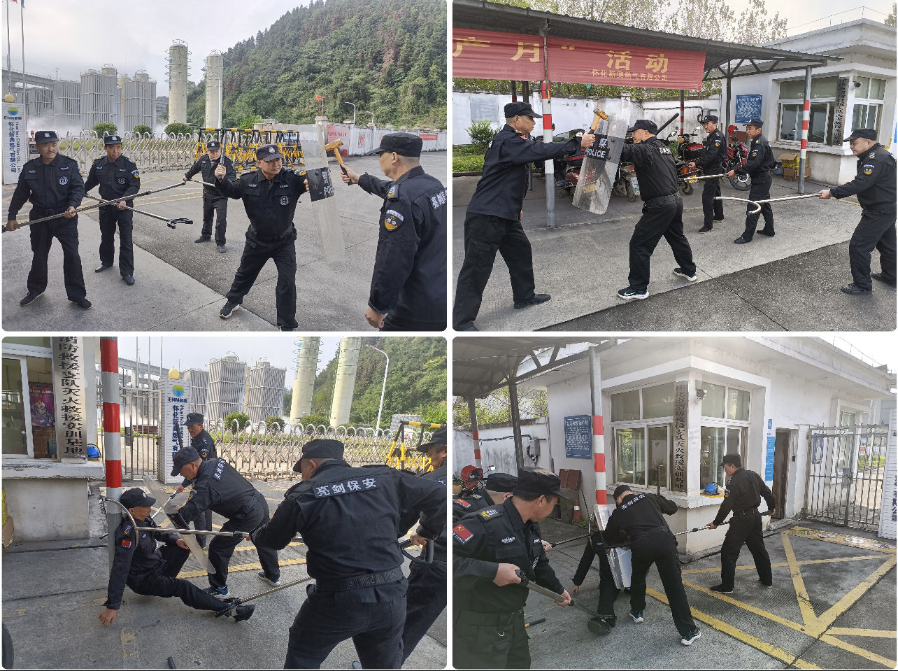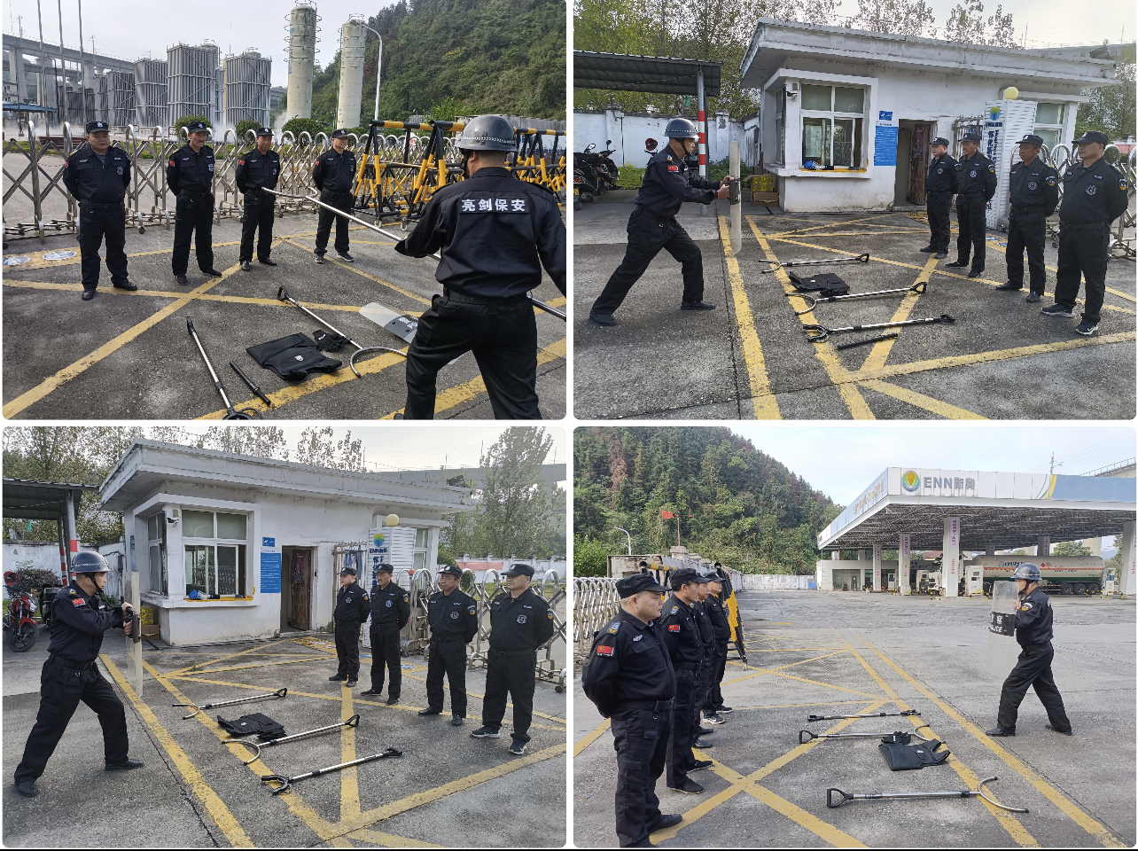 根据年度工作、培训计划,怀化亮剑保安服务有限公司于2023年10月10日对驻怀化新奥燃气有限公司4名保安人员进行了为期一天的反恐防暴演练。