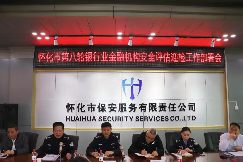 2023年11月9日上午10:00怀化市第八轮银行业金融机构安全评估迎检工作部署会在怀化市保安服务有限责任公司7楼会议室召开。