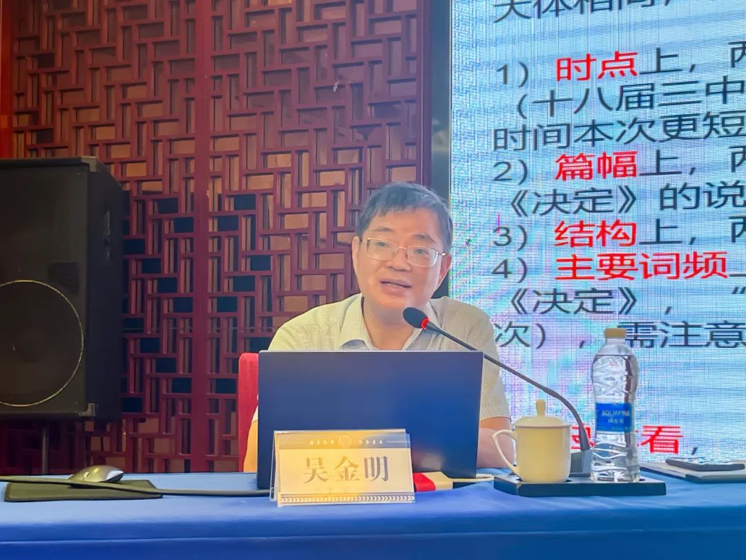九三学社中央委员、湖南省委会副主委吴金明教授从我国经济复苏面临的压力与困难入手,全面剖析了党的二十届三中全会精神内涵、变化以及未来改革方向,阐述了全会《决定》提出的27个新概念,指出了民营经济发展面临的新机遇。同时结合湖南保安行业实际,特别是国际重大会议安保任务越来越重的趋势,为保安企业如何把准推动高质量发展的着力点、加快培育新质生产力等指明了转型升级方向。