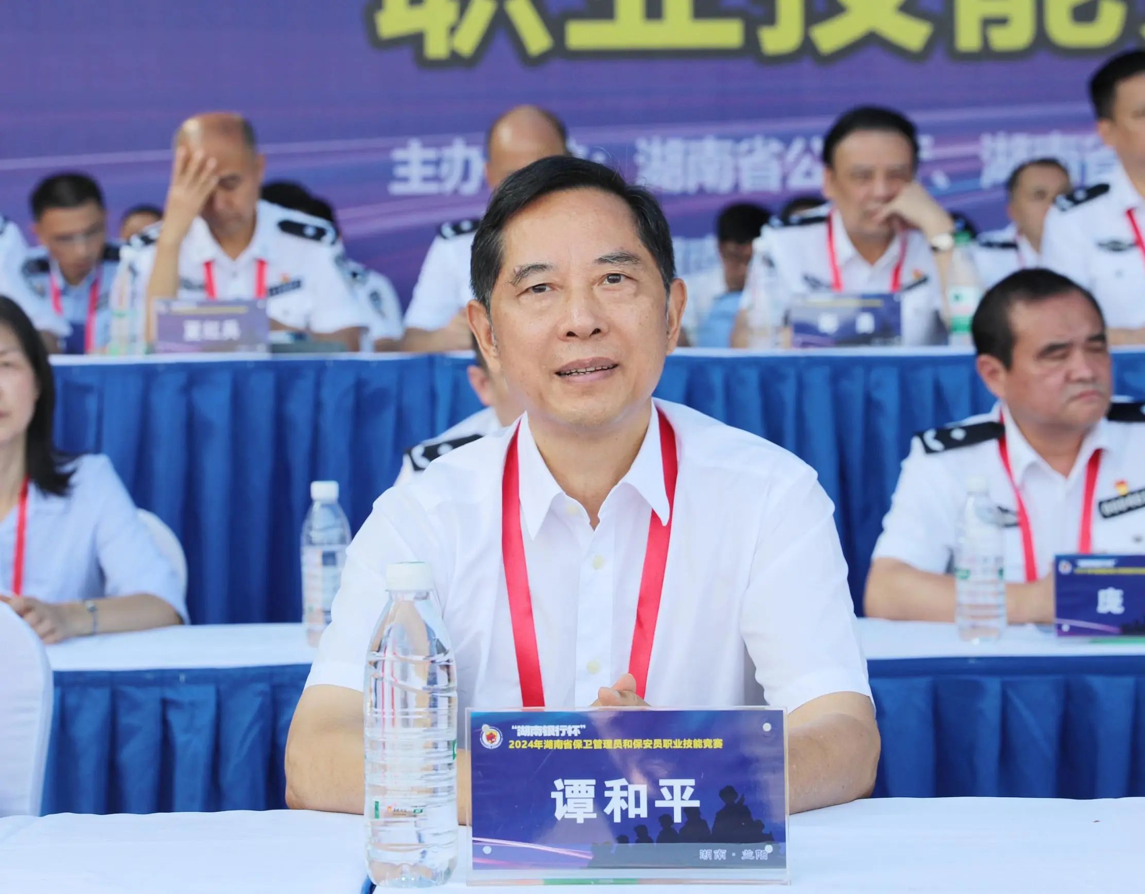 9月29日上午,2024年湖南省保卫管理员和保安员职业技能竞赛在益阳举行。中国保安协会副会长吴建平,省公安厅党委委员、副厅长、一级警务专员谭学军出席开幕式并讲话,益阳市委常委、政法委书记胡安邦致欢迎辞,省保安协会会长谭和平、省公安厅治安总队副总队长(主持工作)、二级警务专员王千雄、益阳市人民政府副市长、公安局党委书记、局长史尚篪出席。来自全省的7支保卫管理员队伍和14支保安员队伍共206名选手参与决赛竞逐。
