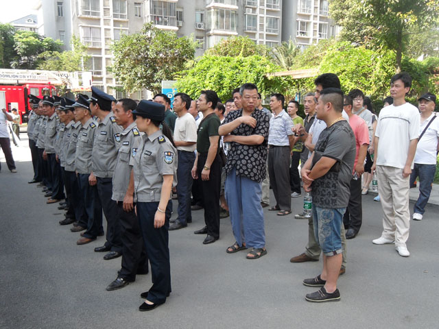 2013年6月18日清早、艳阳高照,骄阳似火,由怀化电业局恒光物业公司组织、有怀化金剑保安公司全体未当班保安、恒光物业公司全体员工参加的消防演练,在怀电新苑如火如荼的展开。