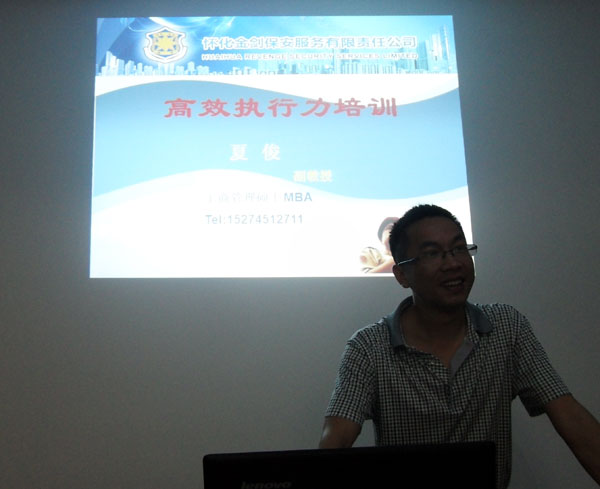 2015年5月29日上午,怀化金剑保安公司高薪聘请了工商管理硕士、怀化学院副教授夏俊老师在公司会议室为全体管理人员和部分班队长主讲了“高效执行力”的培训讲座。